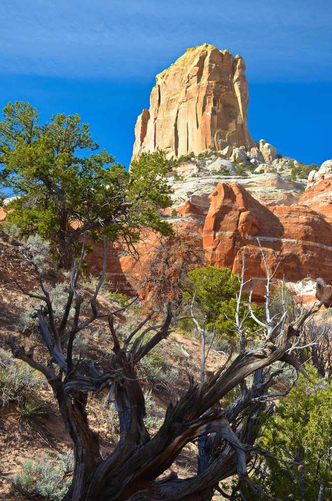 I’d left reasonably early and was in cruise mode when a varied rocky outcrop caught my photographic eye and bade me pull up. The fact that it was on private property only made it more attractive. Yet again I’d stumbled on something you don’t see in the tourist brochures but, after a fortnight in Utah, you learn to expect something of this calibre every day, jumping out and surprising you. Transpires that it has a name, Square Butte, and what everyone seems to have missed is that, around the tallest spire, there is some dramatic scenery and, just beyond that, on the White Mesa next door, are some extraordinary flukes, towers and canyons – stuff I only found out about later.