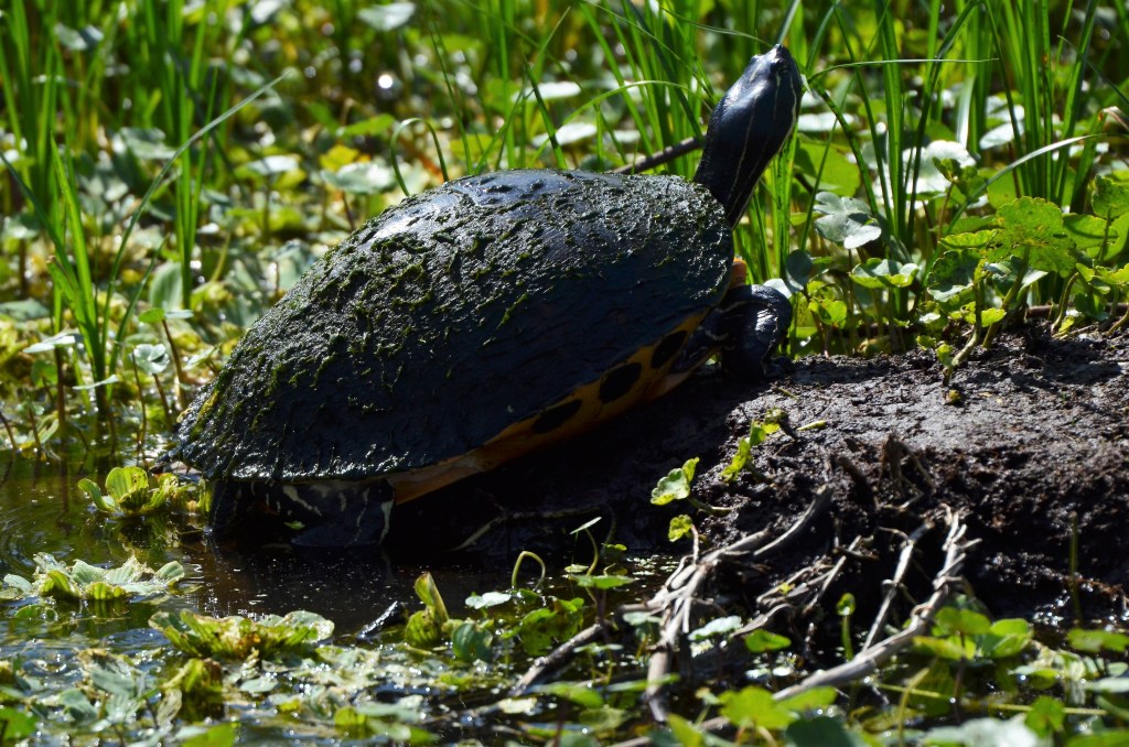 I move on, the heat and humidity starting to take its toll, even though it’s only around 9.30. The trail is flat, just like all of Florida actually. I stop at a shady crossroads with seats and pause for refreshments, blissfully unaware that the biggest reptile I’ll see all day is about 20 metres away on the other side of a mound. It will be ¾ hour before I come across him.