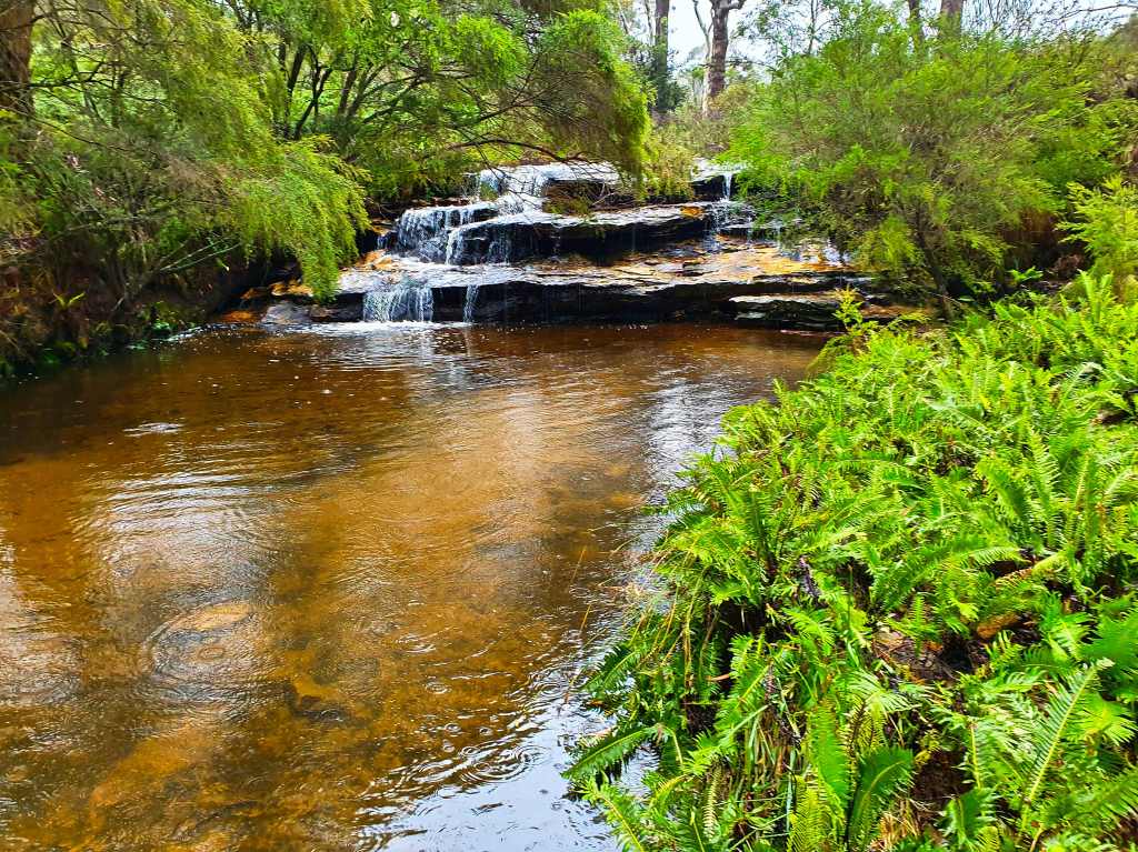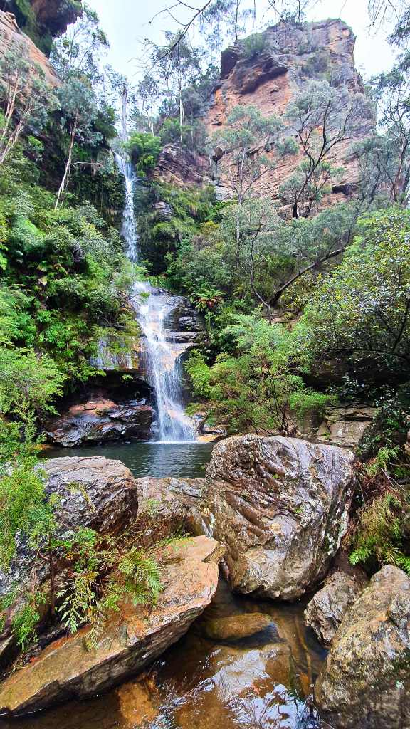 It was only 12 minutes’ drive away and the walk was only 2.7 kms return. It’s walk 21 in my local bible, “Blue Mountains Best Bushwalks” volume 3. It’s rated easy/medium, the latter because of stairs. It’s also recommended for swimming and picnics. Should be a snack, though the pictures didn’t indicate anything special.