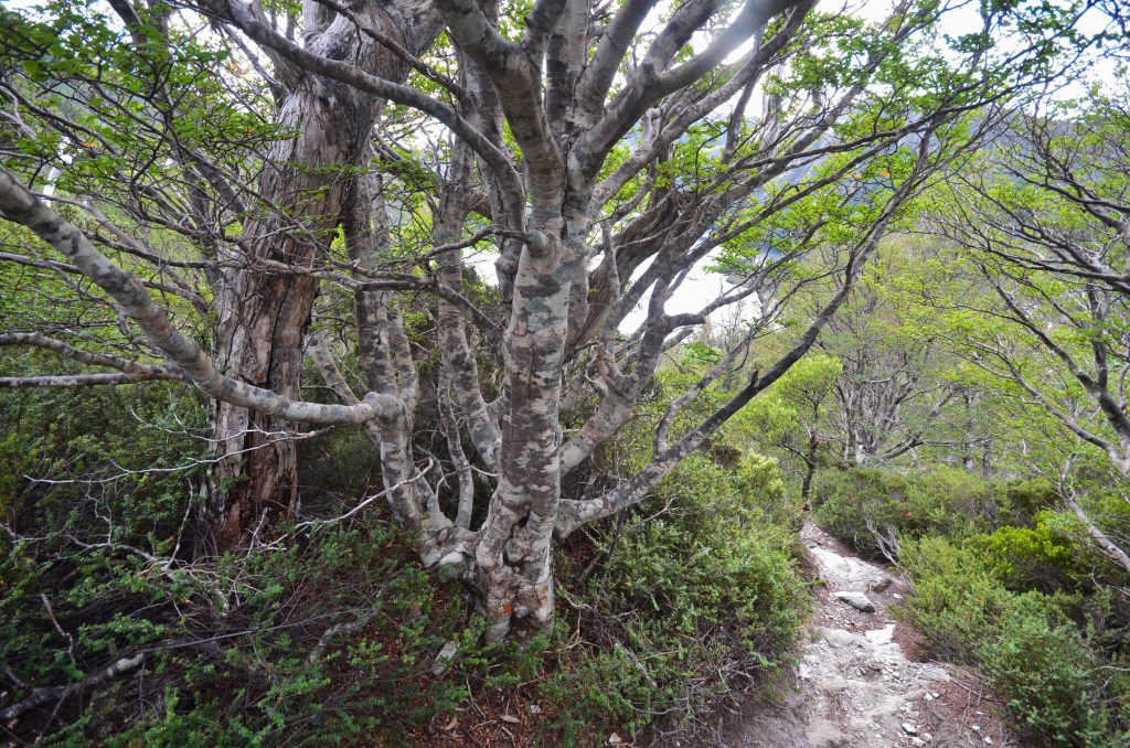 I stumble gratefully along until the intersection with the Lake Wilks Track is reached. From here it’s downhill all the way, only it’s another grade 4 route so I anticipate more suffering and am not disappointed. It’s rugged, rough and, at times, dangerous. I’m grateful I’m an experienced bushwalker and can negotiate such ways but I’ve exerted more energy than I anticipated and I pause here and there for a drink and to recuperate.