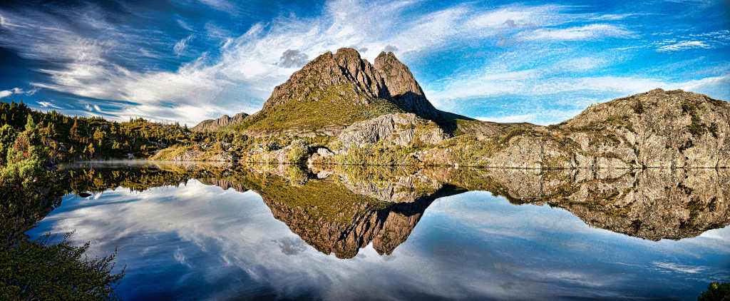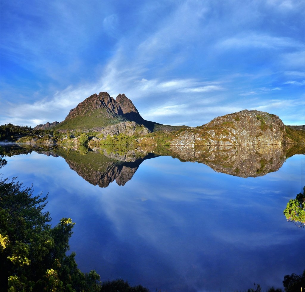 I turn onto the final entry to the national park and head down the last 8 kms, past two eastern quolls and a possum; there’s no more rain and occasional breaks in the sky; by the time I reach the shore of Dove Lake, it’s like a miracle has occurred; there’s not a cloud in the sky.