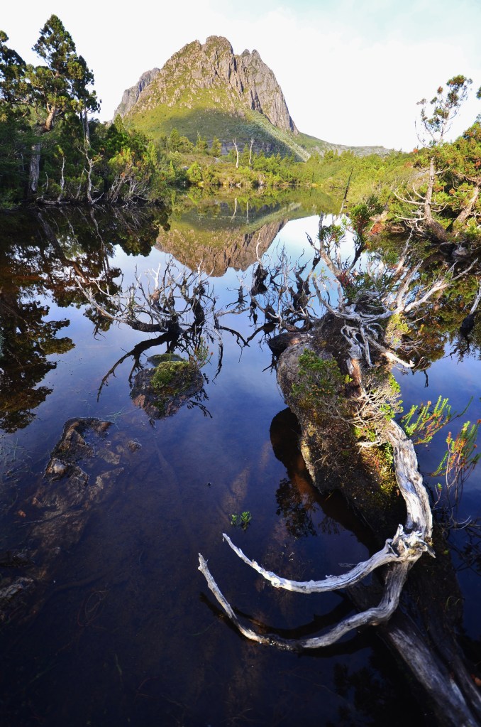 Mercifully I’ve arrived early enough so that I can make some mistakes but hopefully ensure that there’s some good shots in amongst them. Then I get a fetish to go and shoot the famous boatshed; it’s a sort of “have to do it while you’re here” thing but halfway there realize it’s taking up valuable time and it gets overridden so I do a U-turn and I start my big hike, initially on the eastern side of Dove Lake until I reach the Y intersection where Lorraine and I had gotten “misplaced” previously and turn left onto the Lake Rodway Track, starting the climb to Mount Hanson.