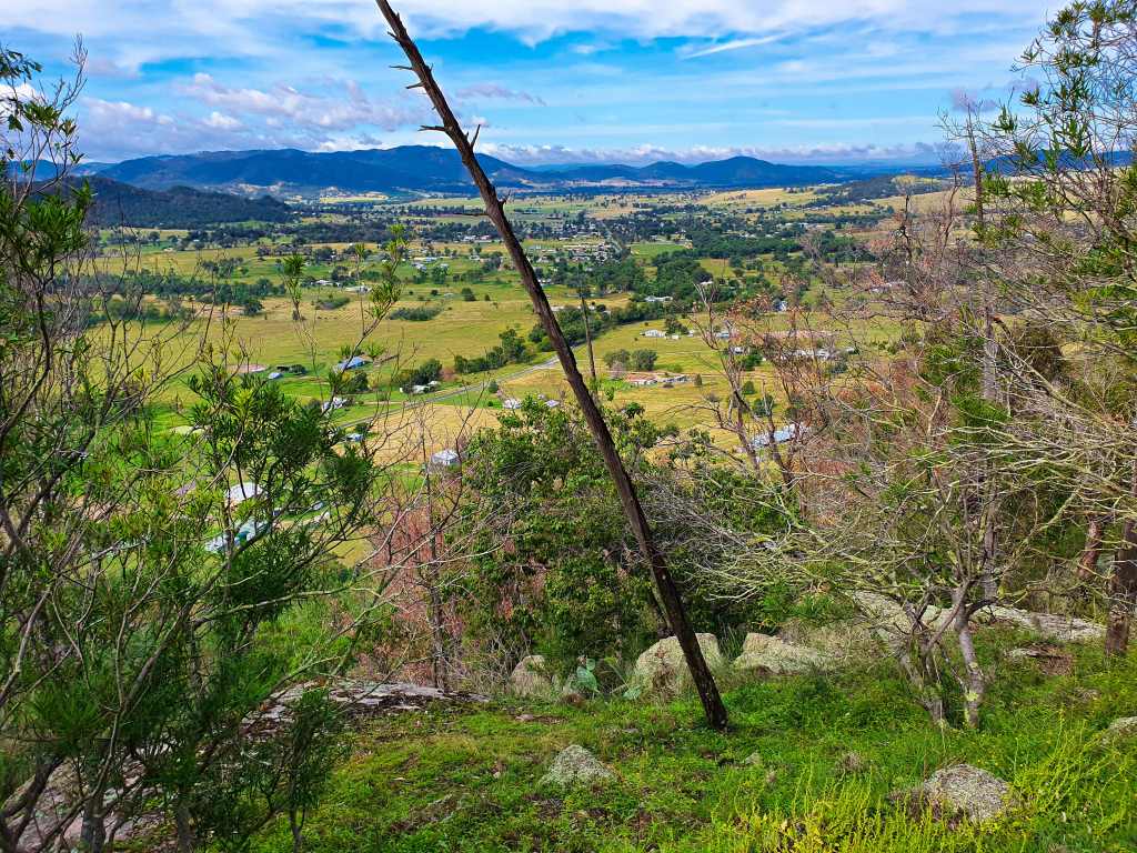 It coincided with a small track, the first I’d seen. After resting and making that phone call I followed the trail. It sure was a whole lot easier than what I’d been doing for the previous couple of hours and a quick descent got me to a vertically aligned fence line that a fallen tree had made a whole lot easier to negotiate, but then it was back into virgin scrub.
