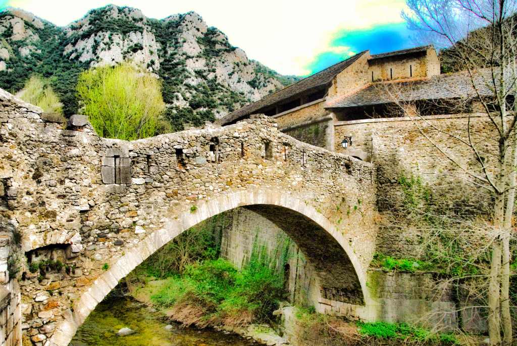 All the way to Villefranche in the car and during the early stages of the train trip the supreme snow-capped peak of Le Canigou rose majestically skywards making it easy to understand why the locals hold it in such reverence. At every slight gap in the canyon walls, there it stood, clouds gathering as if to pay it homage while the spring thaw drained its mantle of snow to expose its lower slopes.