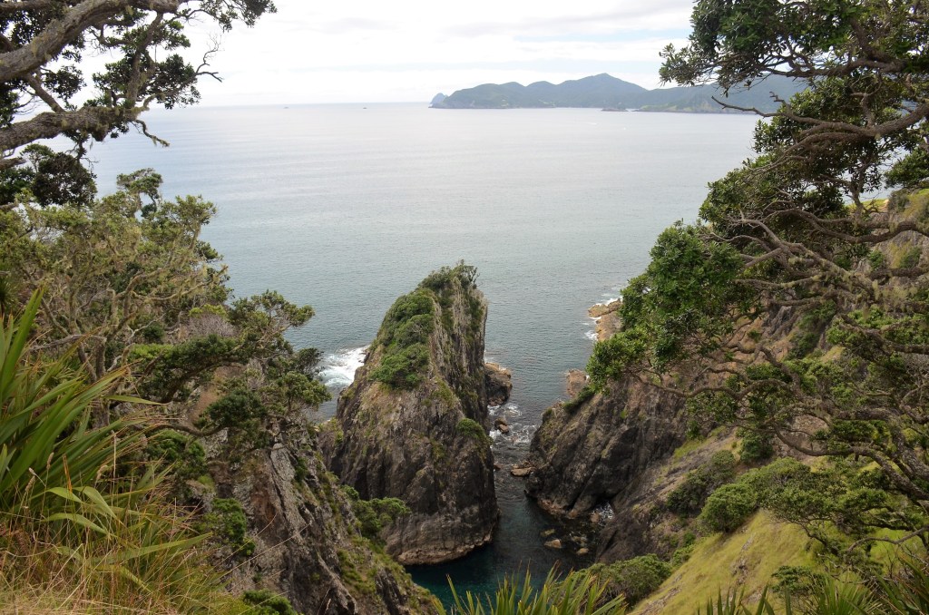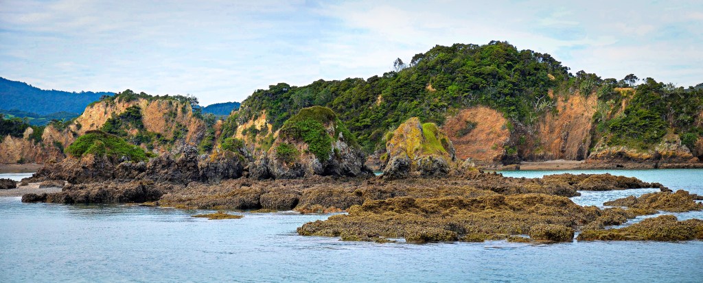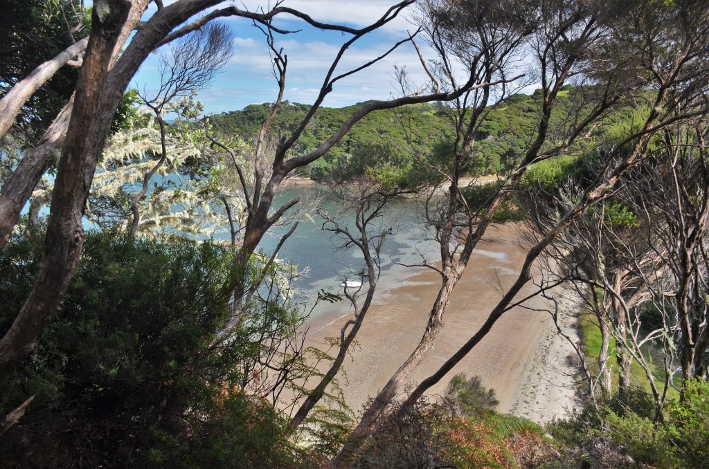 Then we’re there, filtering down Otehei Bay to the wharf and everything is new to us as we embark. We’re fortunate that I’d asked the female attendant about tracks on the island and she’d indicated where the maps were and suggested to do the main loop (which was what we’d intended) but add in the Cliff Pa track.