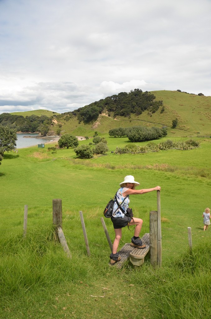 This would take us past Urupukapuka Bay, one we’d overlooked briefly at the commencement of our journey. Luckily it was the right choice. There were other people for a start, two dads with their 3 young daughters were frolicking along the trail, much to our amusement because the track was riddled with sheep droppings and one of the bubs was barefoot and doing everything she could to avoid the trail. At the bottom of the slope leading to the cove was an unlimited water supply and I gleefully refilled our water bottles and we drank like it was our last on this earth. The joy of drinking plain water had never seemed so good.