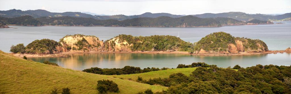 We were climbing again, heading towards the recommended Cliff Pa loop and finding it about 10 minutes later. The sign clearly indicated where we were and we turned off with confidence and started heading seriously uphill again, a long, winding trail where the grass hadn’t been manicured for some time. As we gained height, more islands became clearly visible. It was beginning to be the most picturesque portion of the whole walk. In fact, over 1/3 of all photos I took this day were on this section.