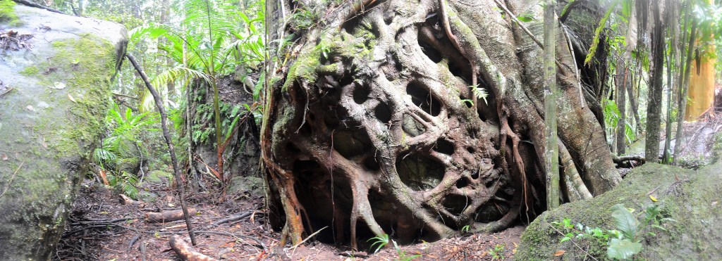 So, instead of exploring I turned around, crossed the creek twice and scrambled up the slope. Except, when I reached very near the top, it was a jungle with almost impenetrable vines and a vertical rock shelf. After an hour of exhaustive hiking I was going nowhere and descended again to the creek before walking out to a road, making contact at a house I was walking past and getting them to ring a cab for me.