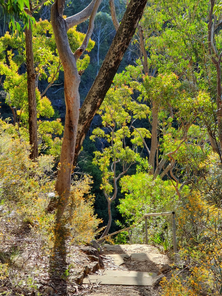 With a spring in my step I moved again towards St Michaels and came across a lady on the path. She was stereotypical Blue Mountains. How many had I seen of her type. Vibrant, happy, not an ounce of fat, wavy hair, content to be in the bush under any circumstances. One couldn’t help but reflect that obesity is a scarcity in this area. People come here to enjoy nature; not only that, to thrive on it.