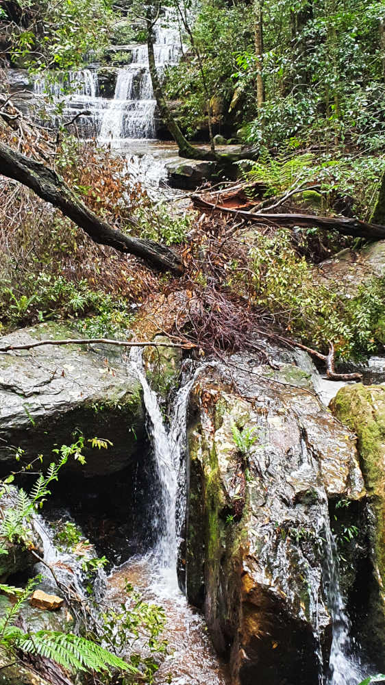 Though my knees didn’t enjoy the descent, my brain was overtaken by the roar of a waterfall somewhere unseen in the forest beneath me. It had to be Terrace Falls. I wasn’t quite sure what to expect but, when they finally came into view, whatever expectations I had were exceeded. These were, indeed, a worthy destination in a Blue Mountains littered with such claims and, the beauty of this reserve is, you’ll never get a crowd.