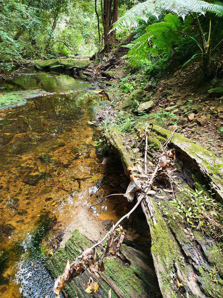 The next day I head the same way to the fire trail but turn right instead of left at Whale Rock. I’m a bit jealous as a few bike riders pass by, mine still not available for a couple of days yet, but it’s easier to forage down to Devlin’s Creek not having to worry about two wheels.