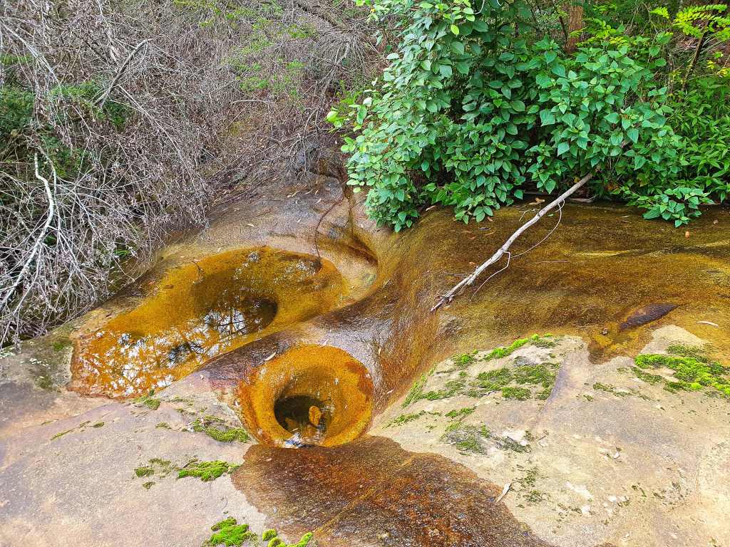 I trek on and reach the Step Track, a 2km diversion “designed to help you enjoy our wildlife, morning, noon and night”. I divert and, not surprisingly, immediately find myself on the first of a couple of hundred steps. Apart from one or two sections, there’s little to get excited about until I reach the lookout, so called, but that’s even more disappointing. I stop on a boardwalk section and get a drink from small waterholes etched in the stone beside it. It’s ill-advised but I’m so thirsty by now. It tastes terrible but fills a hole. I head for home and await my bike in case there’s a reaction, but nothing happens.