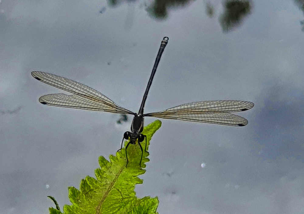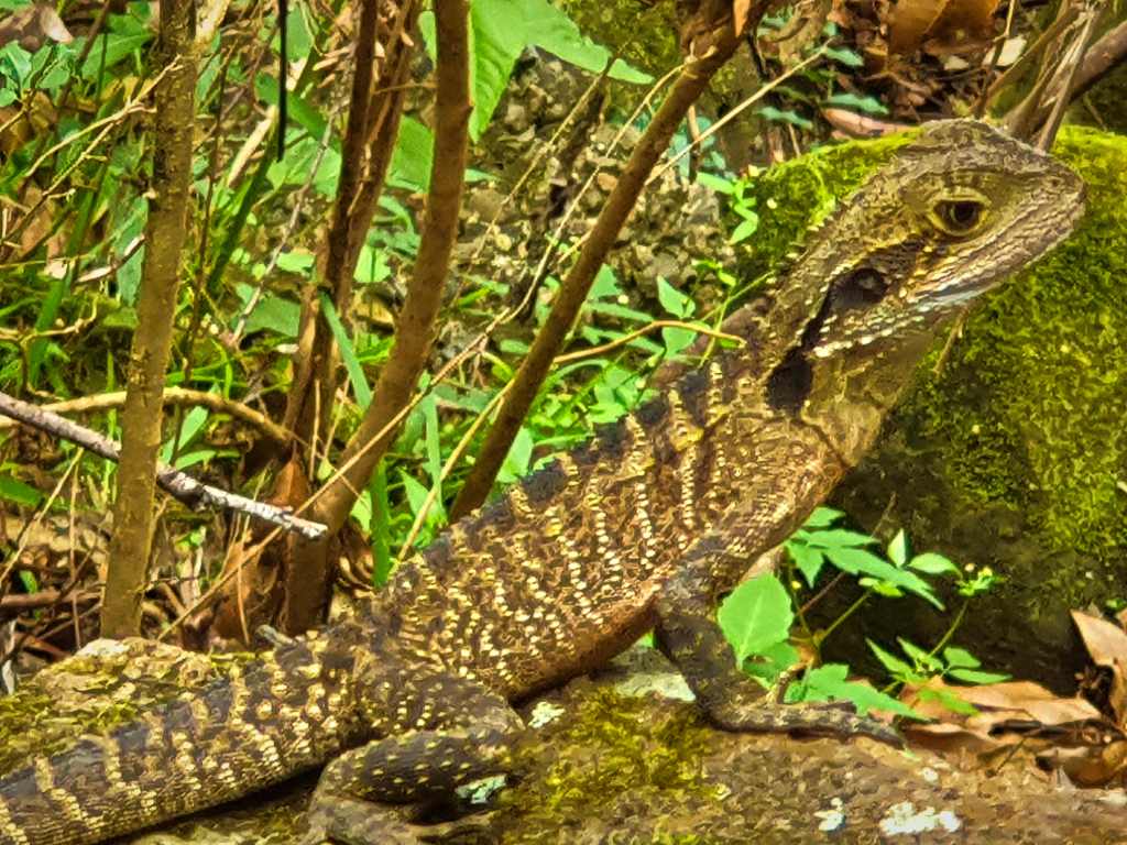 Gurgling waters are testimony that there’s moisture down there somewhere deep inside the scrub. Along the main route there are glimpses and, in time, I find a place to scramble down, vegetation clawing at my ankles and cobwebs at my face en route. It’s clear from glimpses that there’s a significant pond and I burst out beside an unruffled surface of reflective water and rattle off a record of it while a water dragon scurries by.