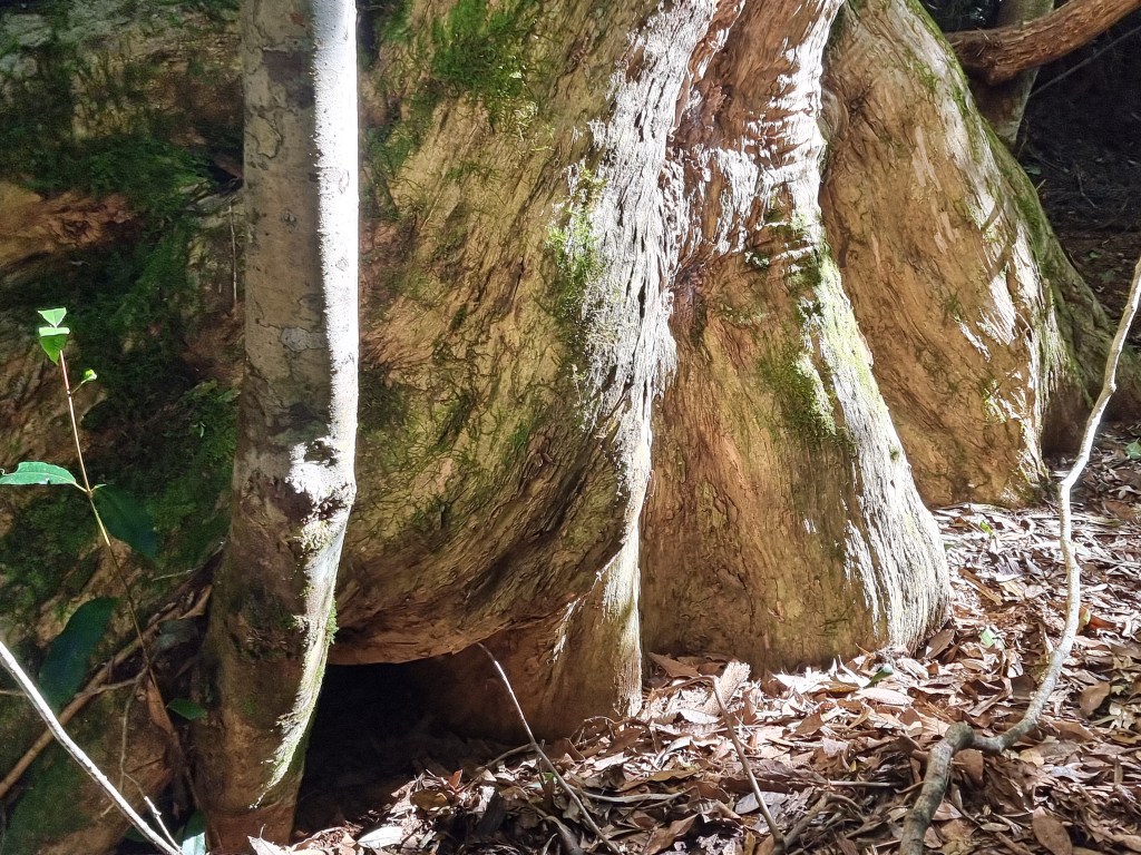 No matter, I’ve got my walking poles and I’m off, initially past the largest recorded watergum, Tristaniopsis laurina, which is nice to know but not overly exciting. I’m waterfall bound and, once upon a time, it involved one minor creek crossing but fallen giants have made sections impassable so now it’s three at least. This is where the poles are indispensable! No wet feet for me.