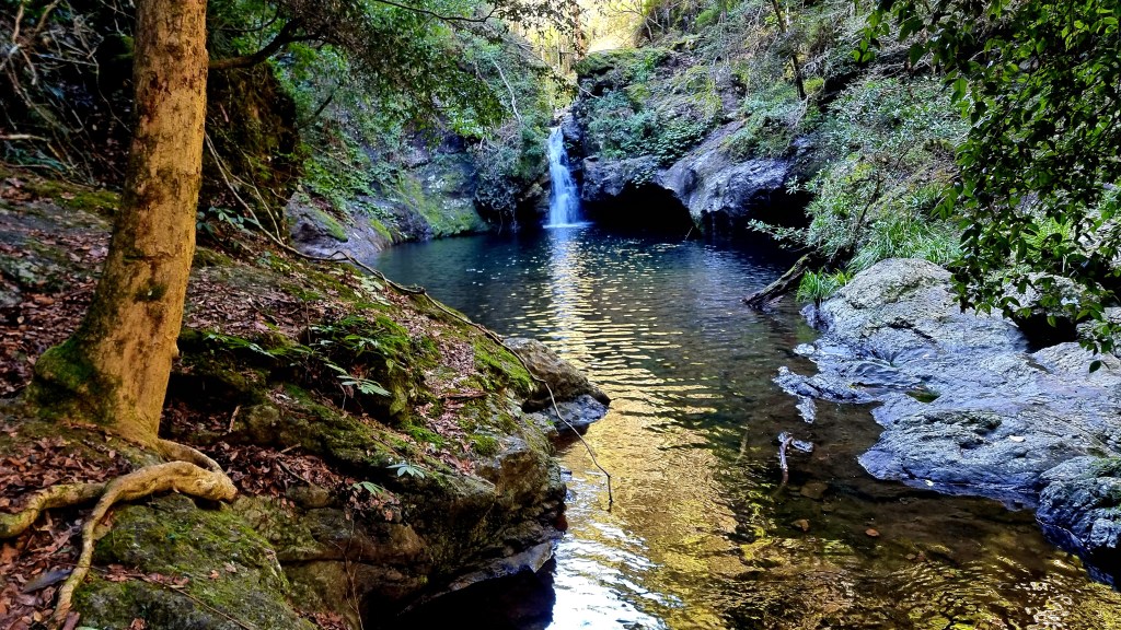 My attention turned to the maps of Wingham hinterland. There were hills to be sure, some even had the word Mount before them and I always figure if there’s moisture up there, sooner or later there’s a waterfall somewhere below. Indeed, there was, Potoroo was its name.