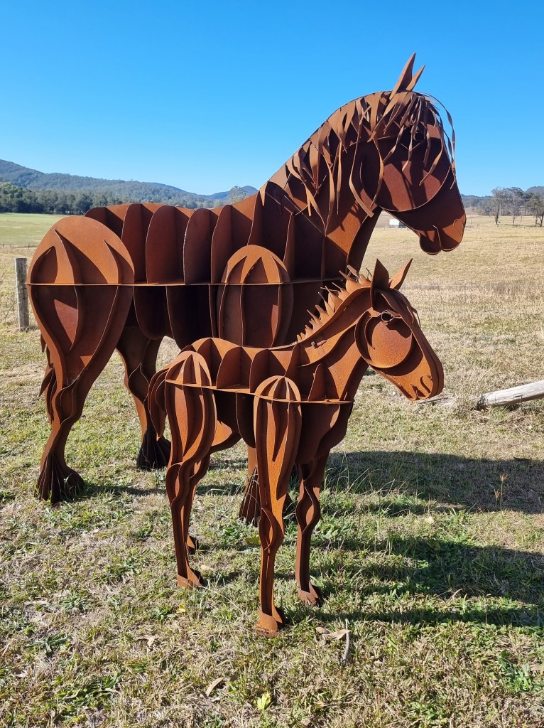 As expected, it was a somewhat circuitous route. Sometimes you wondered why you were pointing the wrong way and then it would change. Past some rickety old fences, a worn out motorbike atop a bus stop roof and an eye catching metal plate sculpture of two horses. Whoever did that was seriously talented.