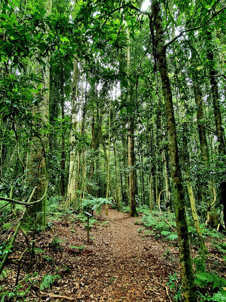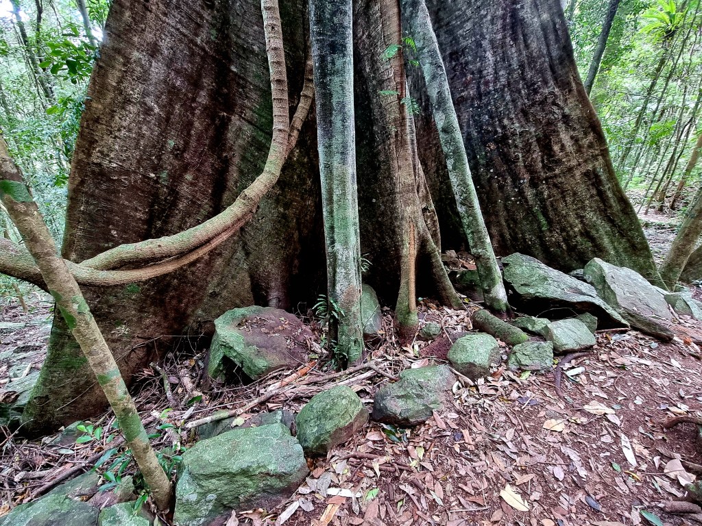 Then it’s time to leave and I’m climbing back to the black booyongs, rosewoods and prized native tamarinds further up and rubbernecking a vine that has climbed to the sky on its host while stepping over the occasional tree root. There’s a pleasantness about walking here, deep in the forest yet not having to hack your way through underbrush, simply admire the giants around you.