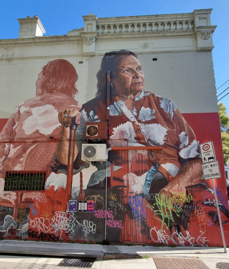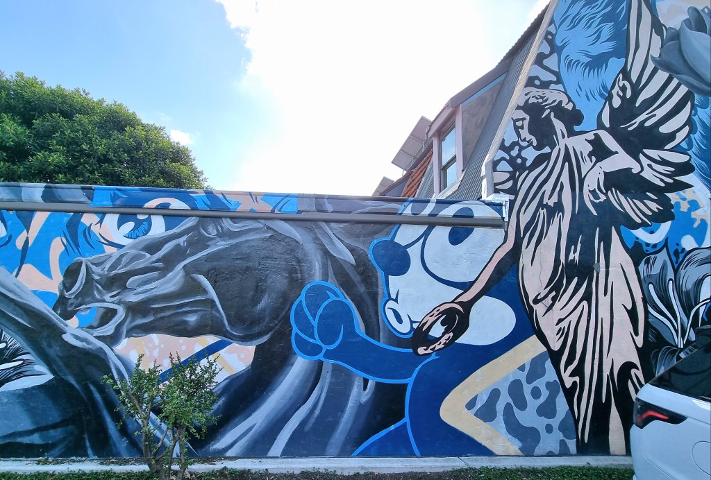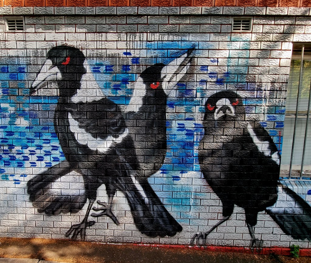 Not far away in Lennox Street there’s an IGA carpark. It’s a treasure trove of works and my favourite is Perfect Match by Alex Lahors but The Ox King and The Emperors Daughter will also command your attention, and that’s just a couple of them.