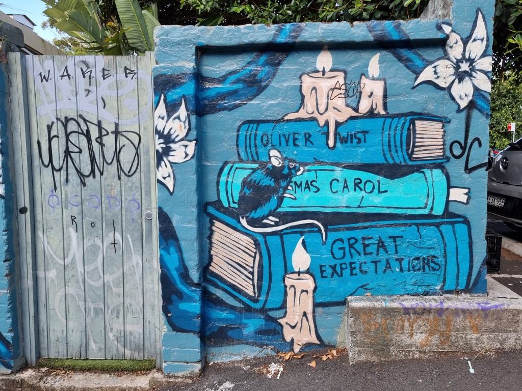 However, Scott is seriously talented, having been a finalist in both the Moran Art Prize and the Archibald. He’s come a long way since tagging Sydney trains when he was twelve. He’s one of many who haunt the back alleys of suburbs like Newtown (especially Newtown), Marrickville, Erskineville and Enmore. Much more quality than you’ll see at the Contemporary Gallery at Circular Quay.
