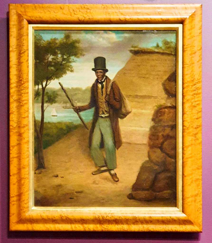 Personalities long gone and all but forgotten are here for all to see. I’m intrigued by many. Billy Blue, a convict believed to originally be from Jamaica, was enterprising after his release as he started a successful ferry service from Lavender Bay to Dawes Point. His dapper attire makes his portrait a standout. The portrait of stern faced Sarah Cobcroft, that can’t help but grab your attention as you walk by, followed her convict husband out here and successfully settled in the Hawkesbury area, becoming the local midwife.