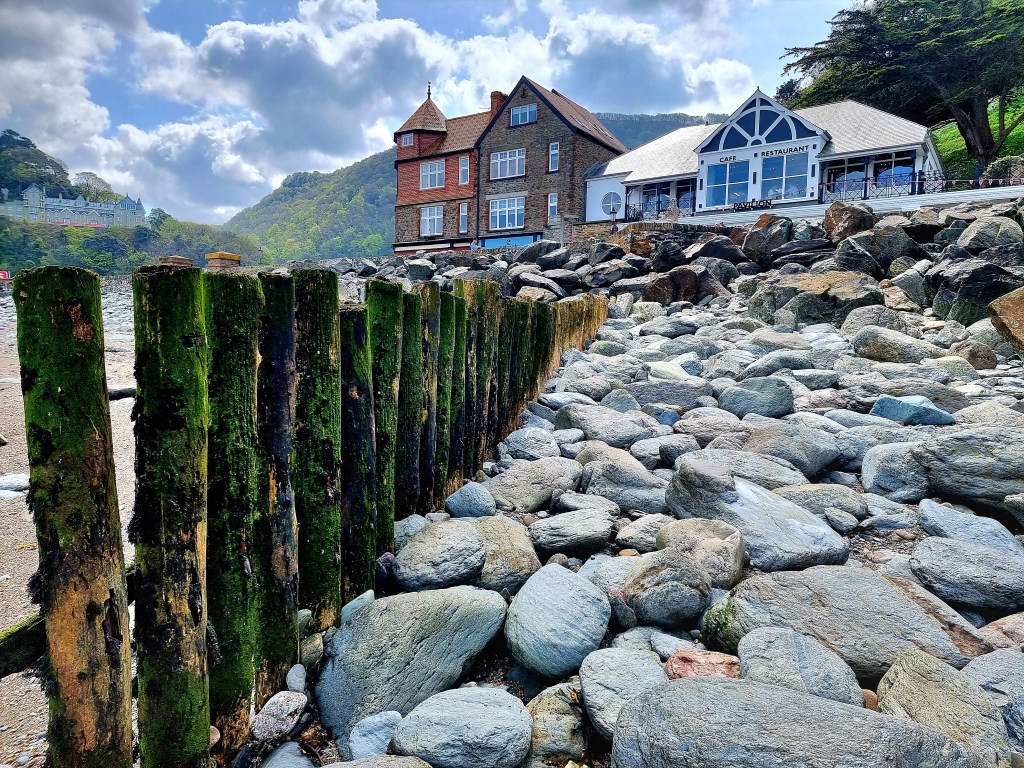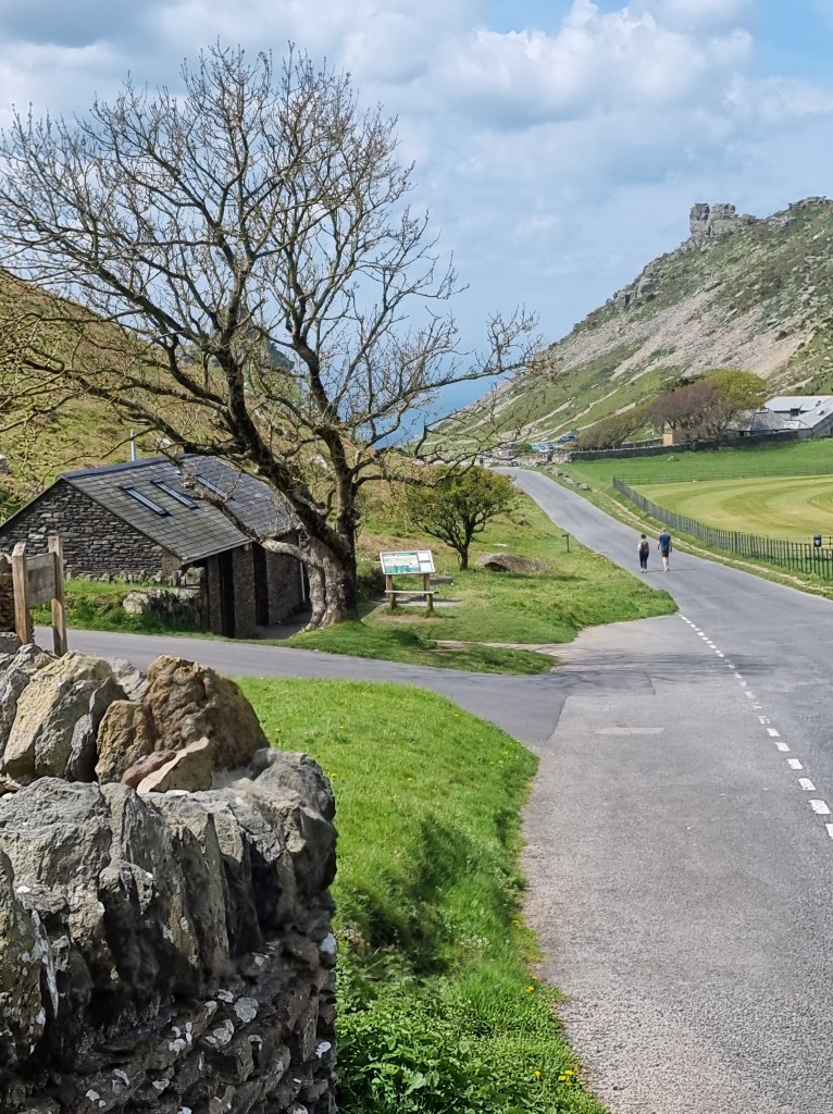 At the bottom Lynmouth, ever seeking to boost its tourist popularity for the last 150 years, seems to have succeeded admirably. With the main street bustling with cafes, tourist shops and the like we stroll in the fair weather beside the river which begat the name. Though the tide is noticeably out and the boats lie stranded, there’s still some water trickling by.