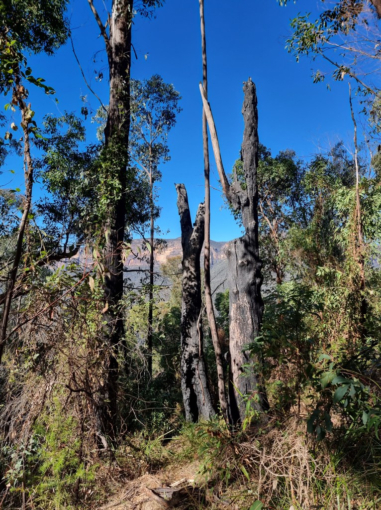 At one point scorched trunks bore testimony to the horror of the bushfires a few years previously. Miraculously they had survived, the crown had been spared on this occasion yet, only two kilometres further on, just when I took the first turn off to the falls, they had been devastated by something they were unprepared for – chainsaws!