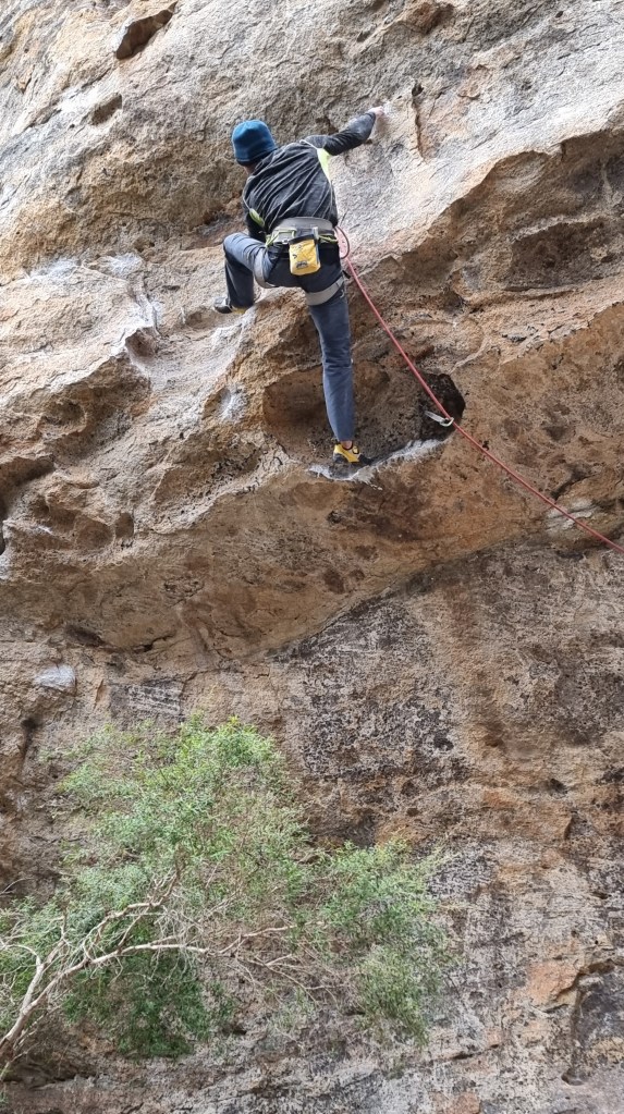 Above, the rock climbers and abseilers have taken over. Places to clip in are everywhere. People hanging one mistake from death have a taste for adventure that exceeds mine. I tarry awhile watching a pair as one supports at the base while the other chooses climbing routes. It must be exhilarating, though they never stop to take in the view; it’s all about chalk on the hands and finding the next hold.