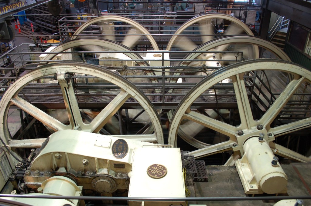 There are other classic accommodation venues here as well, but my limited time didn’t allow me to soak them up.  Just two blocks away was the nerve centre of the tram system.  As you walk through the doors you can’t help but notice the large spoked wheels (called sheaves) with steel cables lubricated by pine tar wrapped around them, for here was the entire power system for the cable cars.  It’s not something that will detain you for a long time, but it’s fascinating nonetheless watching the endless loop go round and round knowing that it is driving something kilometres away.