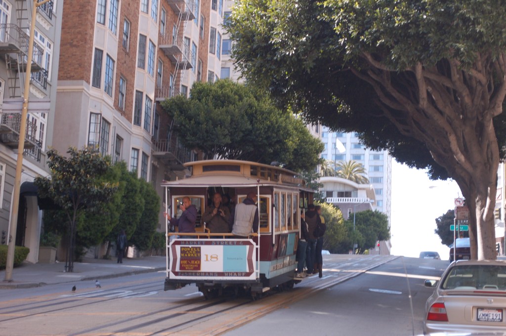 I’d gone at an earlier time to do the great tram ride.  Having learnt the day before that the queue can be blocks long I made an effort to avoid them in order to ride this archaic and uncomfortable method of public transport that was mooted for destruction in 1947 until an ultimately partially-successful “Save The Cable Cars” group was formed.  Today they are a listed National Landmark and protected by law and no tourist visit to San Francisco is complete without a journey to the heights.