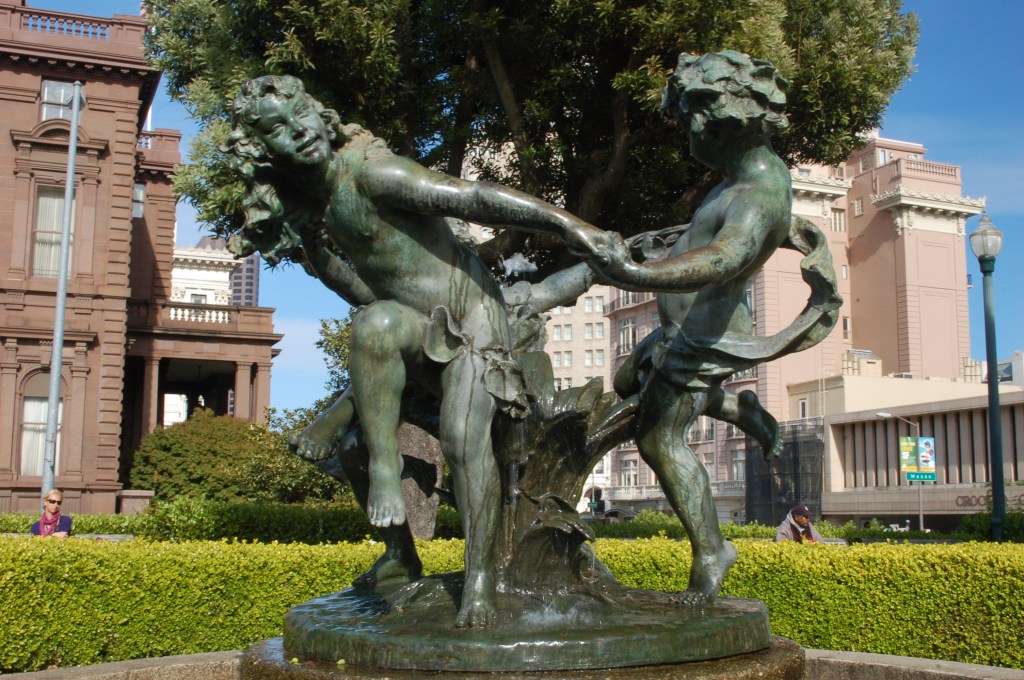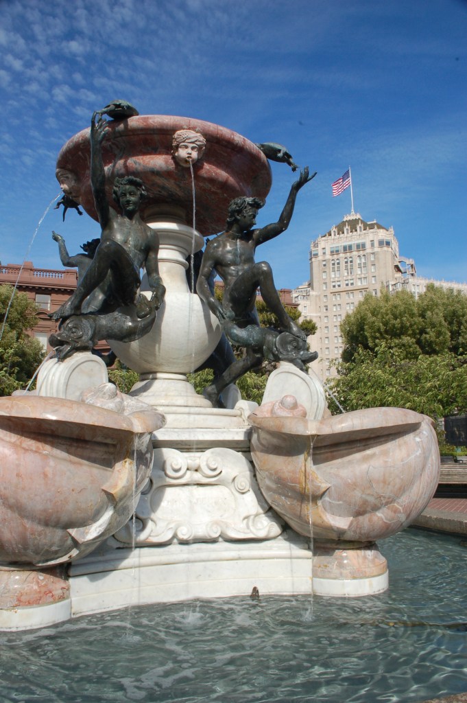 The hotel overlooks Huntington Park, whose centrepiece copy of Rome’s Fontana delle Tartarughe (Fountain of the Turtles) by Taddeo Landini (1585) and donated by the Crocker family, is but one of the attractions.  Nearby there’s the Dancing Sprites fountain by French sculptor Henri Leon Greber, donated by the Flood family.