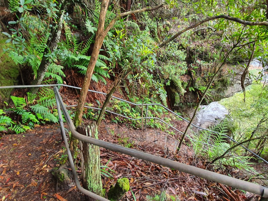 When the top was reached I gratefully sat on an appropriately placed bench seat and texted some photos off.  Though the motorhome was in sight nearby I simply couldn’t be bothered going the extra 60 metres so I sat there for around half an hour soaking up the atmosphere and greeting the dog walkers as they passed by.  Being carefree in the Blue Mountains has a lot going for it.