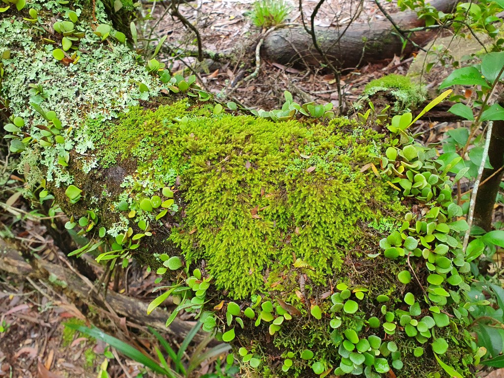 At times easy, other times requiring bum sliding, I’d determined that, sooner or later, I had to reach a made path again as I slipped out of some strangling vines that interrupted my progress.  Occasionally busy clusters of fungi were slowly disposing of decaying trees and lichen grabbed onto whatever was available, usually the coachwood with its wonderful abstract bark.