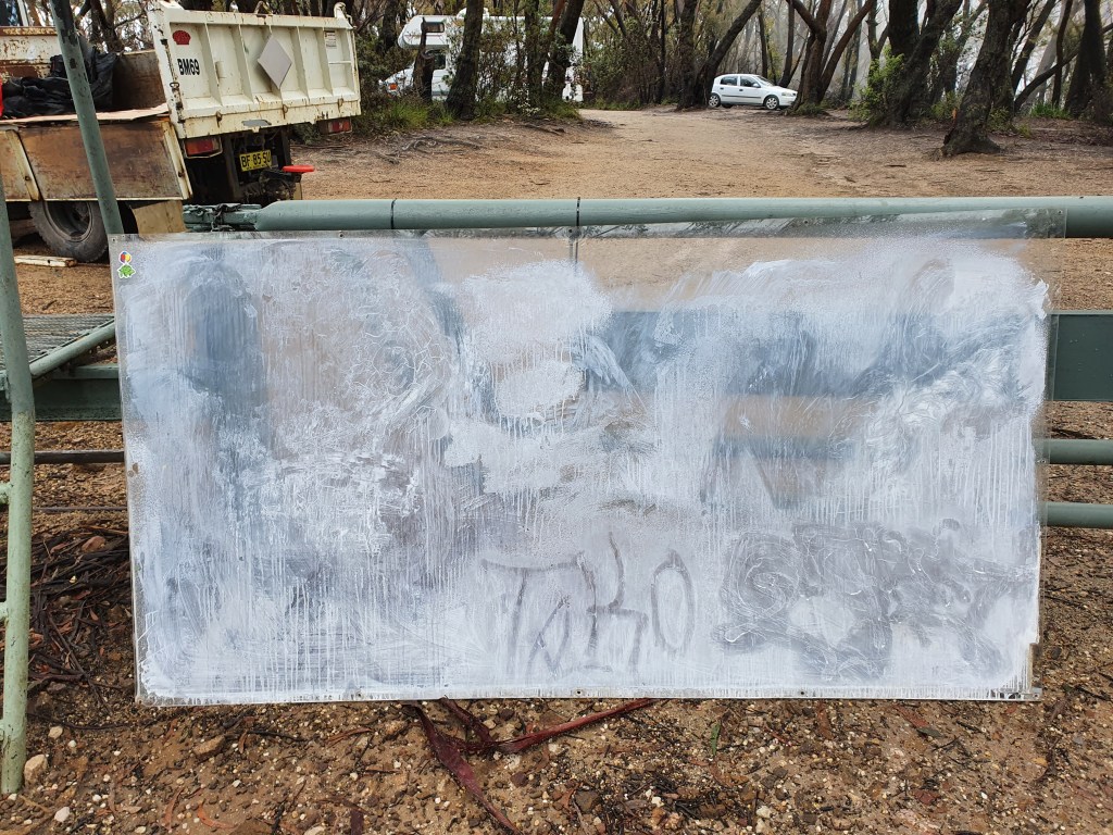 There was a N.P.W.S. vehicle there.  Turns out the clear plastic sheet that covers all the direction and information maps had been spray painted by some idiot.  I felt so frustrated that an underfunded organization has to spend time on crap like this when there are so many other jobs they have to do.