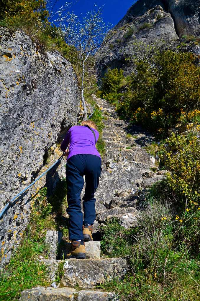We had climbed for about 20 minutes to get to the base of Capluc, whose name comes from Cap Luuis, the Latin for “peak of light”. In the 19th century they were going to erect a statue of the Virgin Mary up there but apparently the local priest entrusted with the funds, a buxom young lady, and the funds themselves, all disappeared. So, in 1973 they erected a simple cross instead.