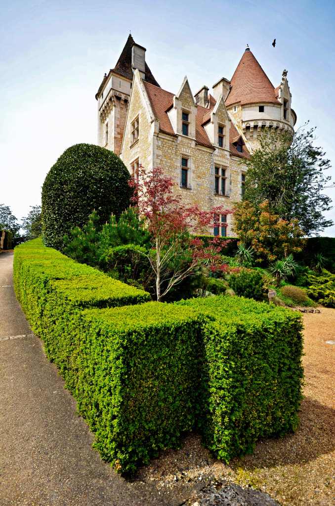 Set on a long rectangular ridge the topiary has walkways either side and down the middle so you can either view the panoramas or admire the gardens. We did both at this, the most popular garden in Perigord, designed by a student of André Le Notre – famous designer of the gardens of the Chateau de Versailles.