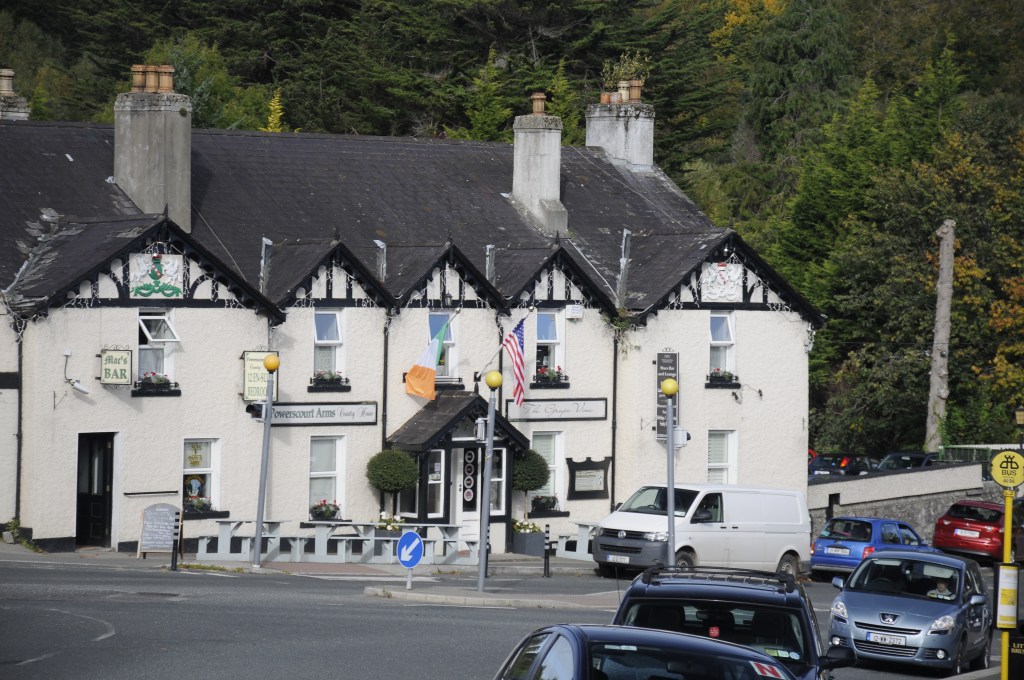 Then we curve back to the mansion, past the ivy covered tea rooms, so tempting but we’ve already decided on Enniskerry. The Slazenger family bought the place in 1961 and fitted it out as a tourist destination that was opened in 1974. Tragically, on November 3rd a fire gutted the main rooms, leaving them a roofless shell. It wasn’t until 1997 that it was finally re-opened. We troll the shops inside the mansion; so tasteful but with a price tag to match; i.e. if you have to ask, you can’t afford it, but hunger overrides all other interests and we depart for Enniskerry.