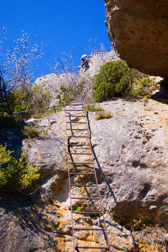 From the base, reached by steep uneven steps, you then have to climb three open ladders (this would not be allowed in Australia!) to reach the very top (Rocher de Capluc) where there’s a small area fenced in.