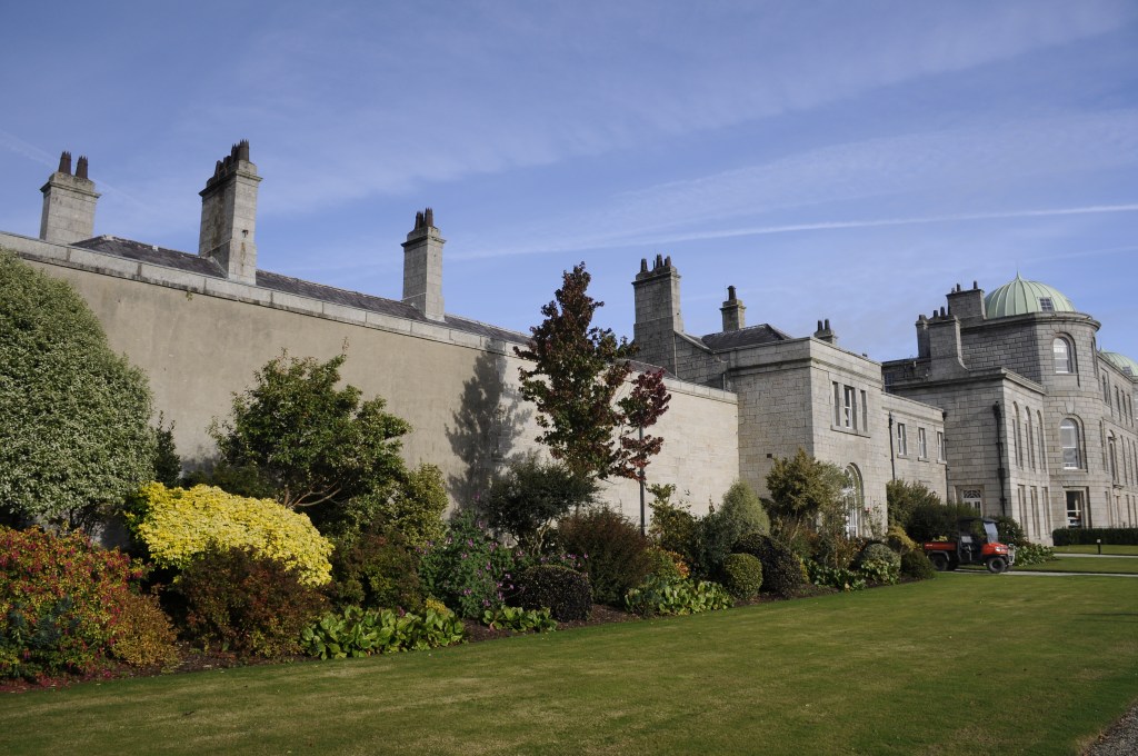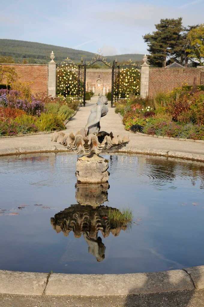 Immediately after you come to the picture postcard view of the estate beside Triton Lake. Looking across you see the life-sized winged horses done in zinc, as represented in the family coat of arms while in the middle of the lake is a fountain modelled on that of the Piazza Barberini in Rome. Beyond is the cascading water that emanates 25 metres from the back of the house and tumbles down the entire slope to the pond.