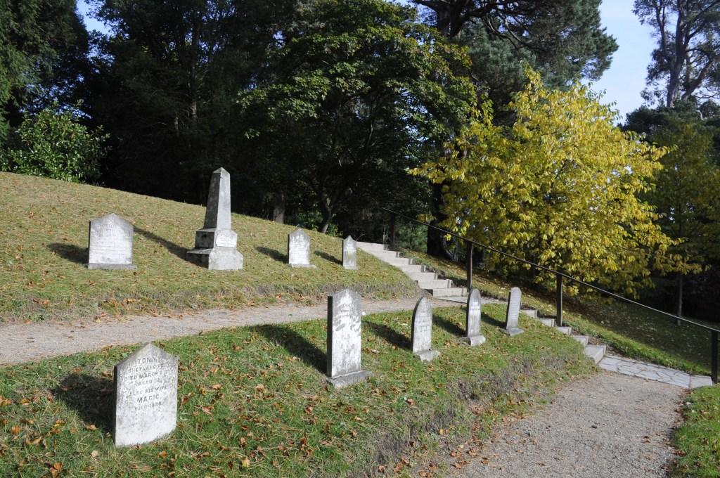 Inside the Walled Garden are some copies of famous bronze statues of ball throwers found at Herculaneum (one of the other places buried along with Pompeii). As we stroll through it’s obvious that spring and summer would be the preferred time to view these areas and we move down into the woods and past the pet cemetery that contains about 50 deceased animals of various kinds.