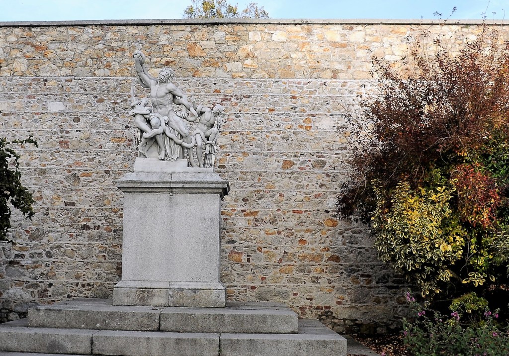 Aeneas was one person who did heed Laocoon’s warning and he fled, later to found the city of Rome, from where the original work was purchased. The single piece of granite on which the Powerscourt copy stands took two weeks to move on rollers from Glencree, all the while supervised by Robertson who sat on top of it!