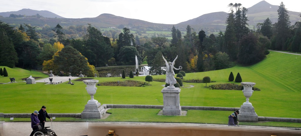It’s not that far away but we first come to a real charmer in a village called Enniskerry. It’s straight out of the “cute” manual and we decide that’s where we’ll have lunch after our visit. Powerscourt is just up the road and you travel through what can only be described as “gorgeous” countryside to get there. Travelling through the 250 year old beech trees lining the road is an absolute delight. It’s a huge estate, with two golf courses as well as accommodation in a mansion before you reach the carpark where we can immediately ascertain that we’re not the first to arrive.