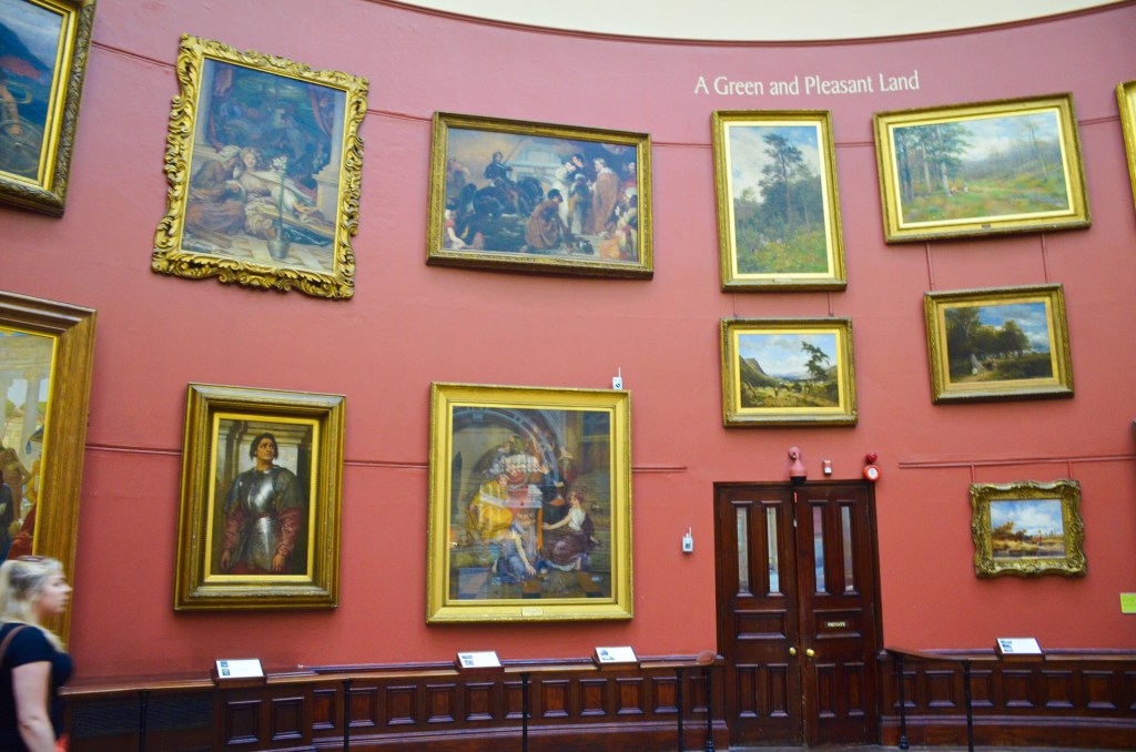 I complained to her about the lack of brochures and she concurred, “We don’t do a very good job of promoting ourselves.” Still, I was now in the gallery and proceeded upstairs to the main viewing room, lit from above by natural light filtering through an impressive glass dome. Here were displayed some of their finer paintings. I was quite taken by those of David Cox who used vast expanses of cloudy skies above people engaged in rural pursuits. They had meaning and character all rolled into one. A work by Walter Langley “While Men Must Work, Women Must Weep”, evoking the tragedy of a missing fisherman as a distraught woman is comforted by a friend I found very poignant. I moved around the rooms, a Greek vase here, a Chimu artefact there and their most prized possession, the Staffordshire Hoard, only found in 2008 in a farmer’s field and dating back to around 650 A.D., were just some of the many items on display.