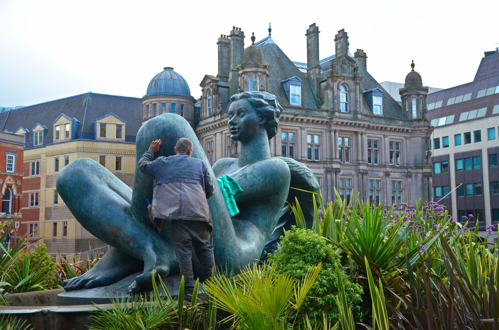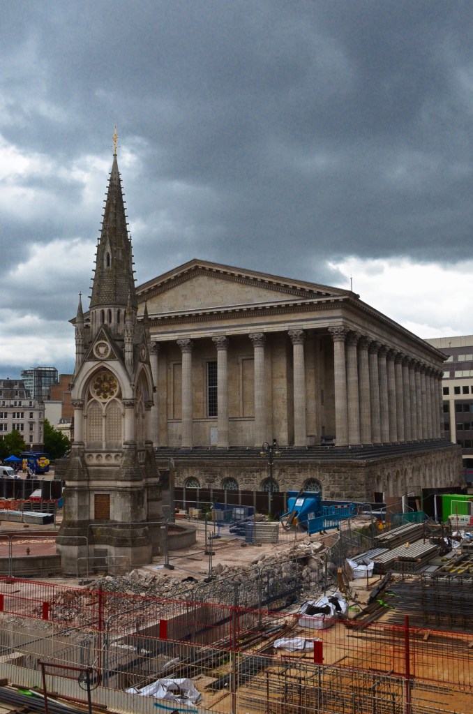 Upon leaving I turned left towards Victoria Square, looking downhill to the splendidly classic Town Hall surrounded by Corinthian columns, but not able to visit its vast interior and hear its resonating acoustics. The restored 1834 edifice would be a wonderful addition to any town. Looking across to my right was the all glass affair appropriately titled the Alpha Tower. At 100 metres in height it’s had a chequered career after the company that built it, Associated Television, closed in 1982.