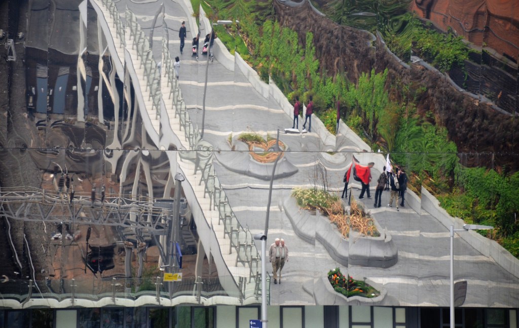 Thus sated and still marginally jet-lagged, I head off back to the station where I still can’t stop looking at the wondrous stainless steel wrap, knowing I’ll be back again tomorrow and can photograph it from even more angles.